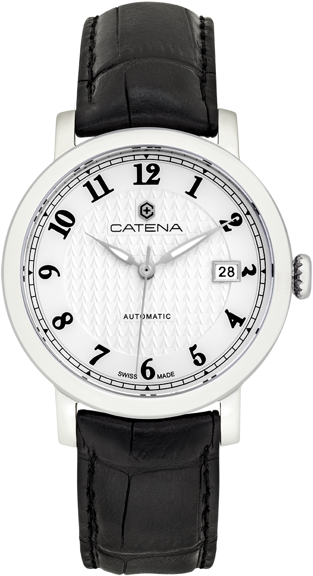 .Black alligator pattern leather strap with double push butterfly steel buckle